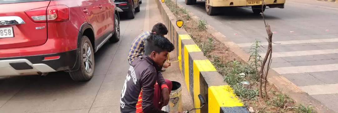 - Painting: Applying two coats of synthetic enamel paint in approved colors on new concrete and plastered surfaces in accordance with MoRTH (IRC – 803) guidelines.