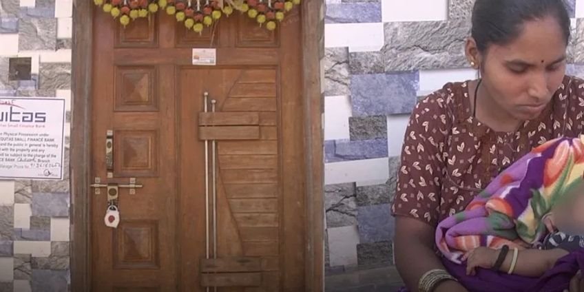 A family in Alakhanur village of Rayabaga taluk has allegedly been left homeless after Equitas Small Finance Company seized their house over a loan default. The house was locked over non-repayment of a loan taken for medical treatment, forcing five family members, including a three-month-old infant, to spend the night outside without food or rest.